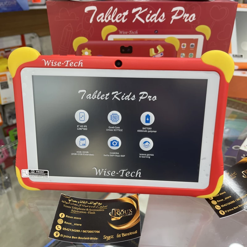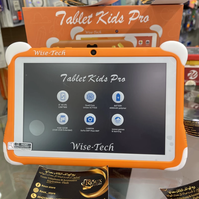 La Wise Tech Kids Pro est spécialement conçue pour les enfants. Elle combine éducation, divertissement et sécurité dans un seul appareil robuste et adapté aux plus jeunes.